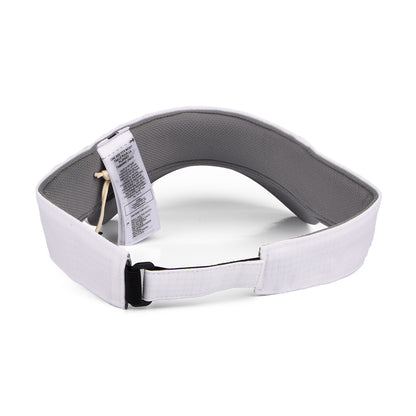 The Adidas Golf Tour Visor in white is partially made with recycled materials. The ripstop visor features the Adidas logo on the front. A moisture-wicking sweatband will keep you dry on the court. There is a hook-and-loop strap at the back that adjusts to fit most sizes comfortably.