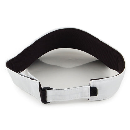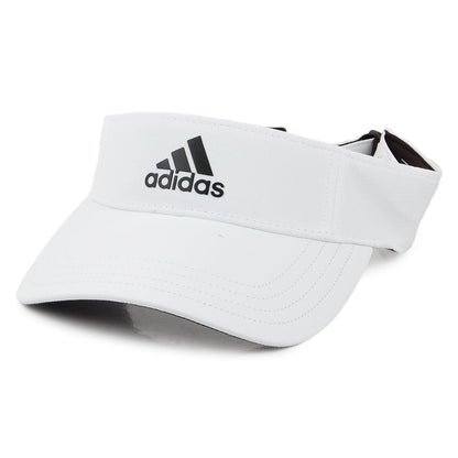 Here is the Adidas Golf Tour Visor in white. The front of the visor has a pre-curved brim. On the front is the Adidas logo. There is a strap at the back that adjusts to fit most sizes comfortably.