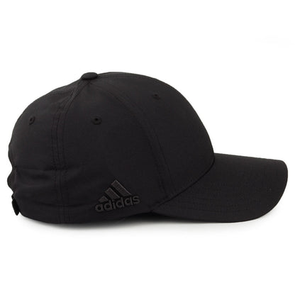 The Adidas Performance Blank Baseball Cap in black is a lightweight hat suited for outdoor activity. This cap provides you with UV protection and a moisture wicking sweatband for comfort. The Adidas logo is embroidered on the wearers right side and there is an adjustable hook-and-loop strap at the back.