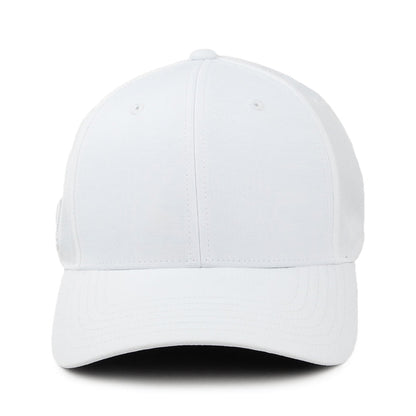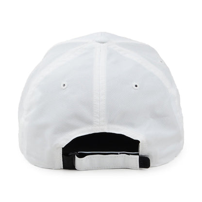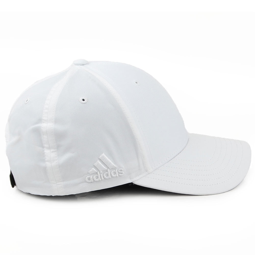 The Adidas Performance Blank Baseball Cap in white is a lightweight hat suited for outdoor activity. This cap provides you with UV protection and a moisture wicking sweatband for comfort. The Adidas logo is embroidered on the wearers right side and there is an adjustable hook-and-loop strap at the back.