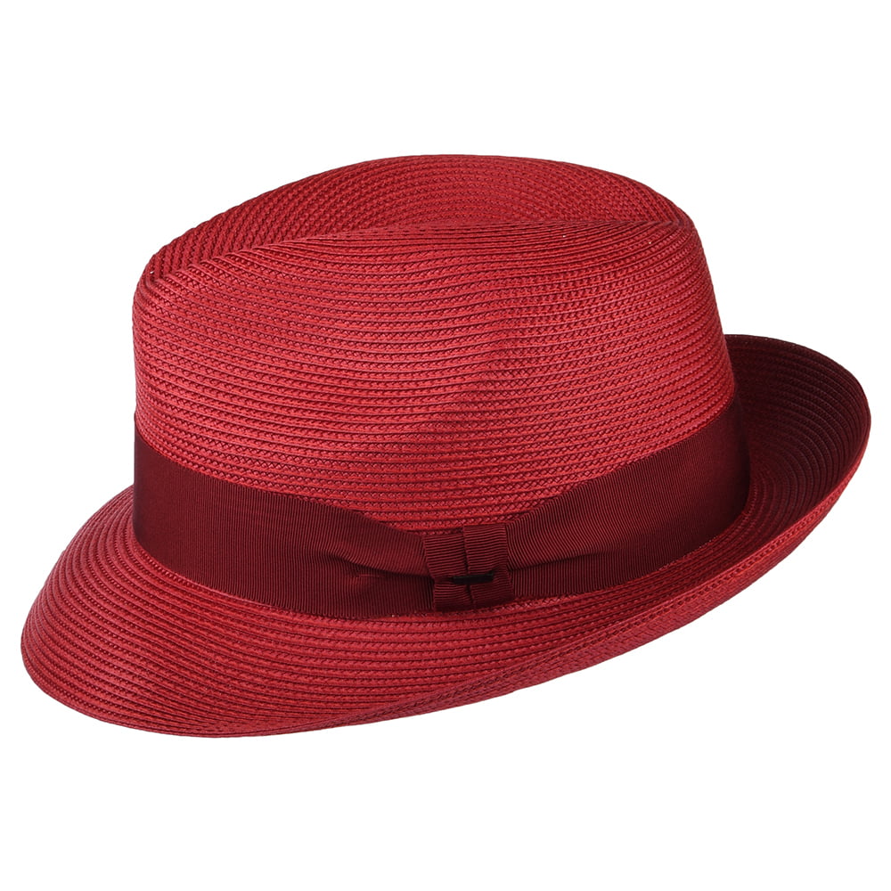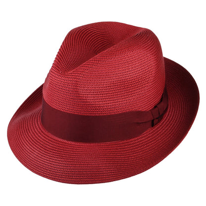 This is the Craig Special Fedora Hat from Bailey in red. This great hat has a 6cm wide snap brim. It is unlined for breathability and comes with a cotton sweatband for comfort. The fedora is decorated with a grosgrain hatband and a Bailey badge on the side.
