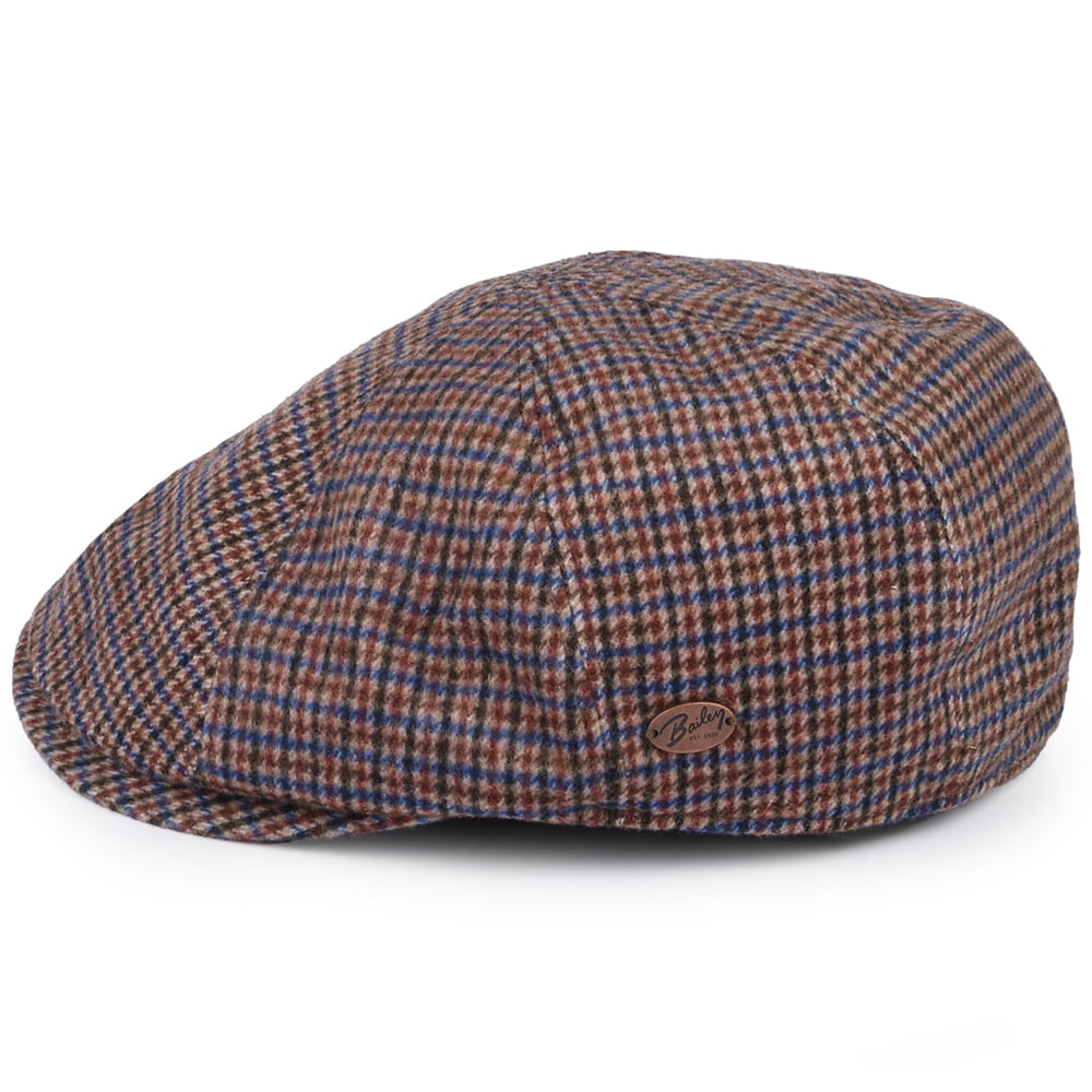 The Bailey Hats Houndstooth Finnegan Newsboy Cap in ochre is made of a warm wool blend and comes with a lining and sweatband for additional comfort and warmth. A Bailey badge is sewn on the side and the crown is sewn down to the brim.