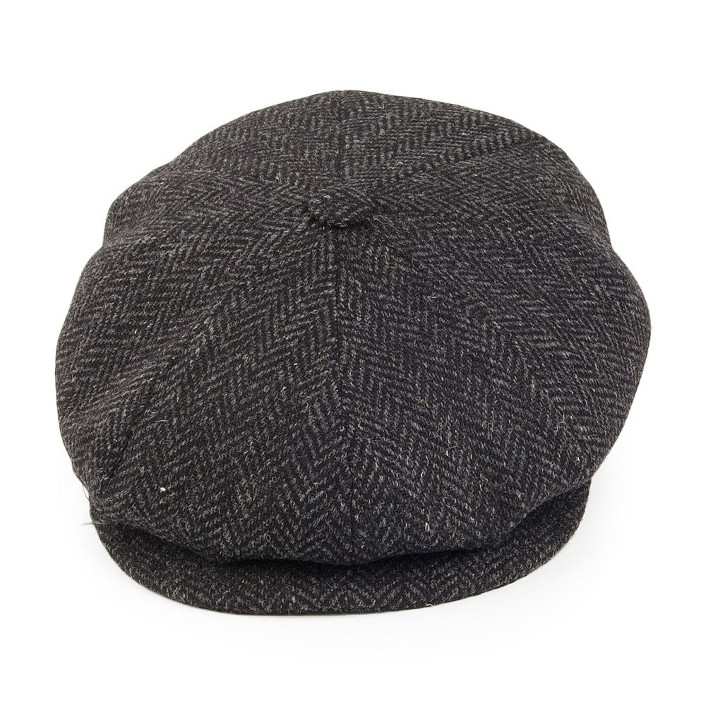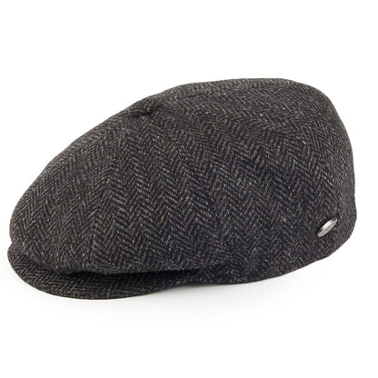 The Herringbone Galvin Newsboy Cap in black from Bailey is a classic full 8/4 cap made from high quality pure wool and hailing from their exclusive Italian Collection. An oval Bailey pin provides the perfect forefront on this fabulous newsboy cap design.