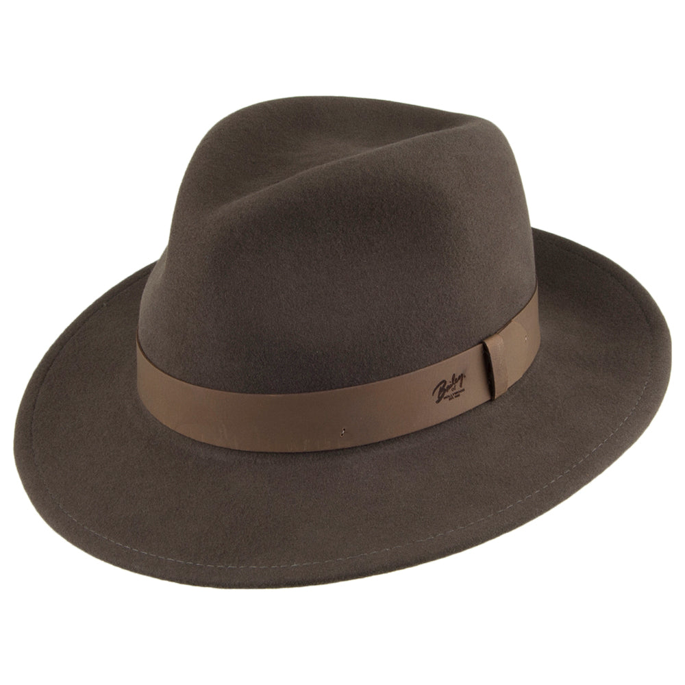 This is the Bailey Sperling Fedora in Serpent. The classically designed fedora repels water and oil based spills. It is breathable, durable and can be packed for ease of travel. The hat has a 6cm turn down brim and a 11cm high crown. It also features a distressed leather hat band with the Bailey embossed on the side.