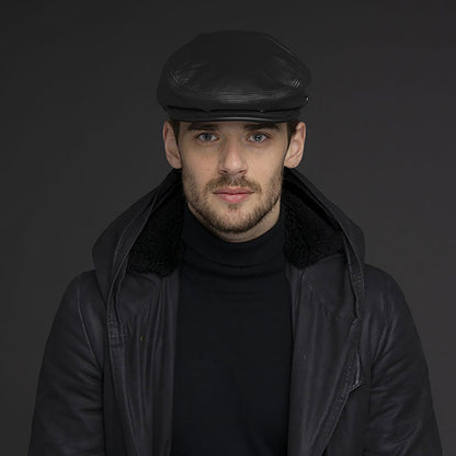 Bailey Hats Stockton Leather Flat Cap - Black