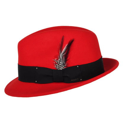 Bailey Hats Tino Crushable Water Repellent Wool Felt Trilby Hat - Red