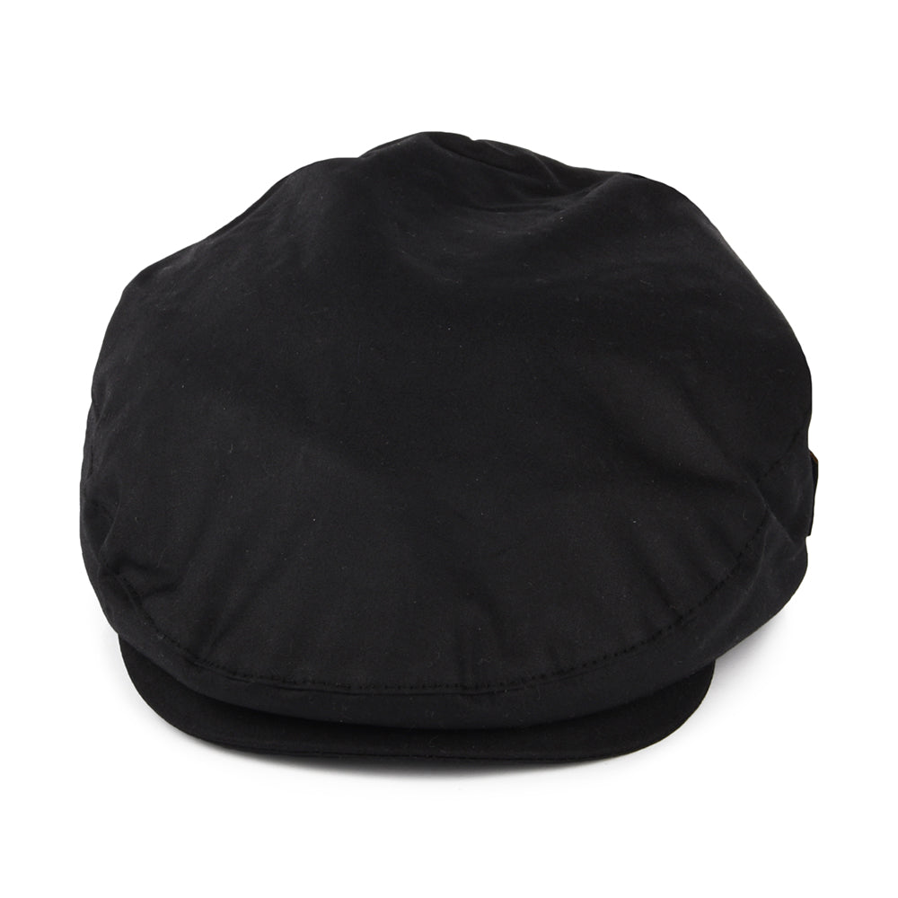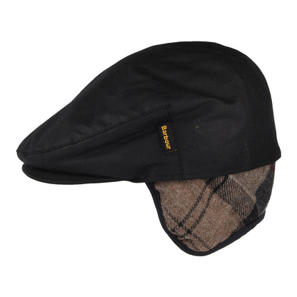 Barbour Hats Cheviot Waxed Cotton Flat Cap with Tartan Earflaps - Black