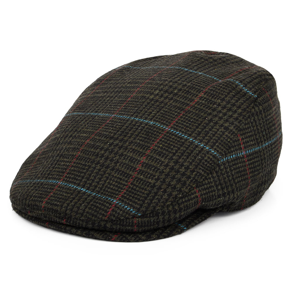 Barbour Hats Cheviot Windowpane Flat Cap With Earflaps - Dark Green