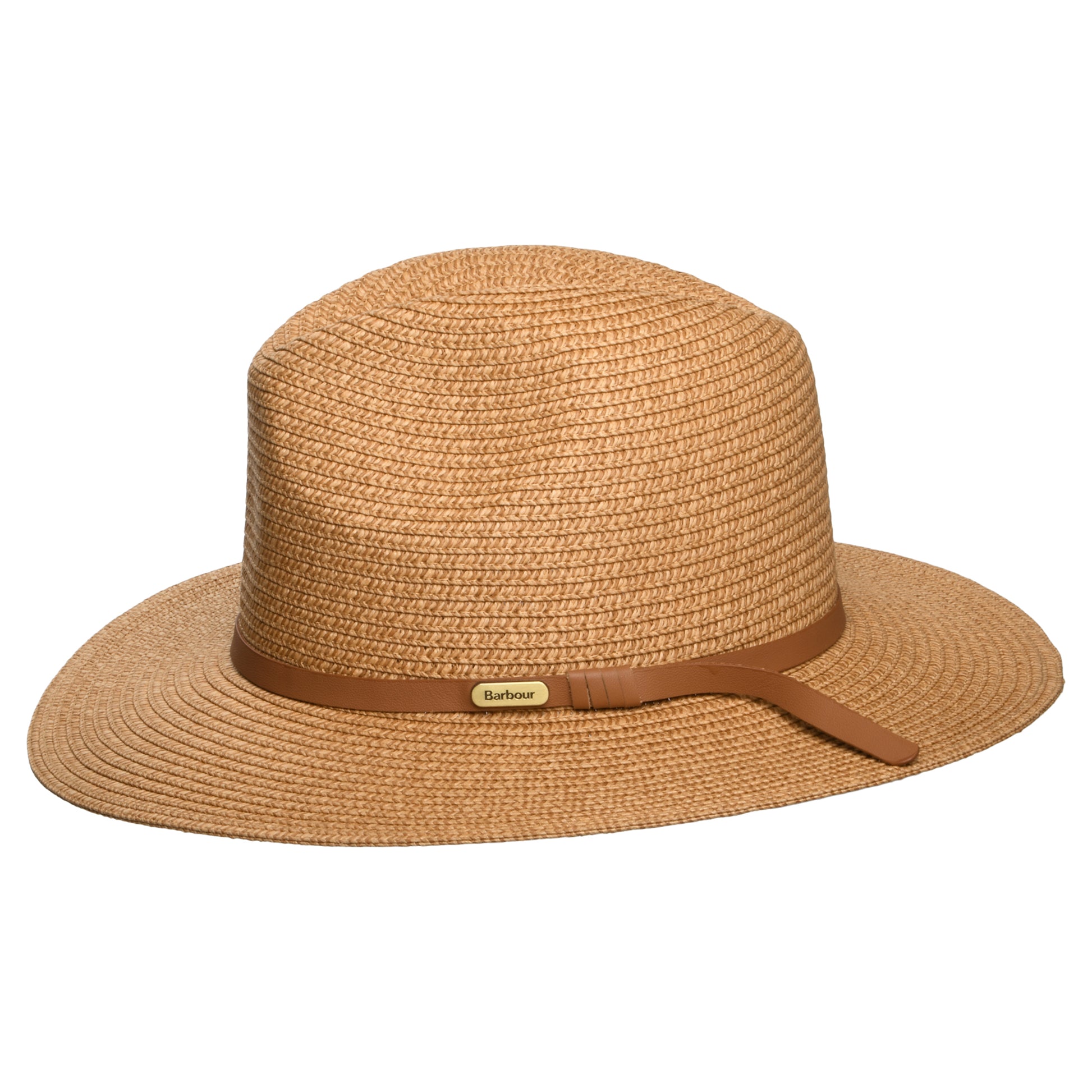 The Barbour Evelyn Fedora Hat in tan is a wonderful summer hat made of toyo straw. This unlined hat features a branded sweatband and is decorated with a leather hatband and a Barbour pin on the side. A stylish hat perfect for the summer days thanks to its UPF 40 sun protection rating.