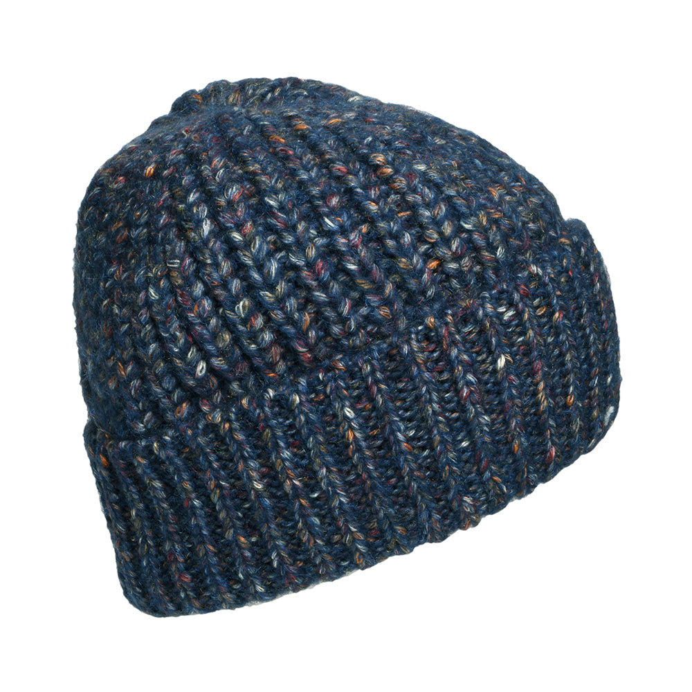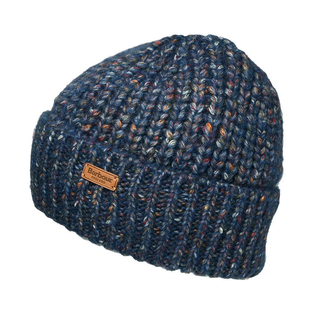 The Barbour Greta Beanie Hat in blue is a chunky beanie hat with a fleece sweatband to keep you toasty in the winter. It features orange, red and off white threads in the yarn and is finished with a leather Barbour tab sewn on the cuff. A super soft hat for the colder months of the year!
