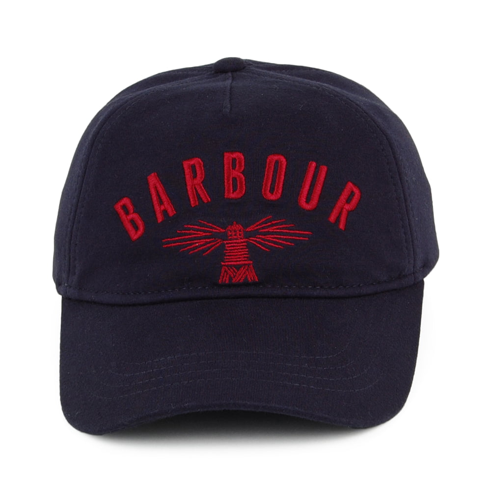This is the Hartland Baseball Cap in navy blue from Barbour. This cap features a lighthouse Barbour logo on the front of the unstructured crown. The cap has a pre-curved brim and an adjustable strap at the back.