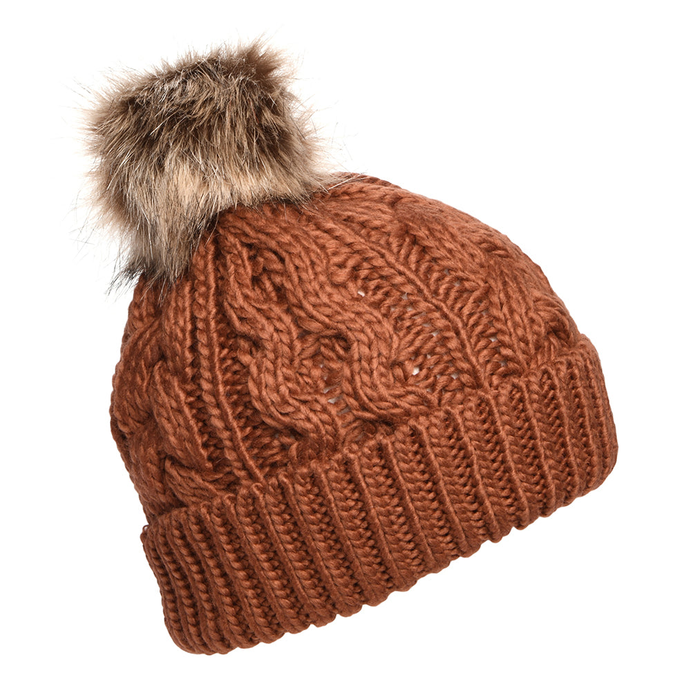 Barbour Hats Penshaw Cable Knit Faux Fur Pom Bobble Hat - Ginger