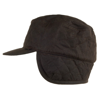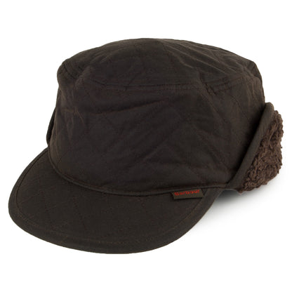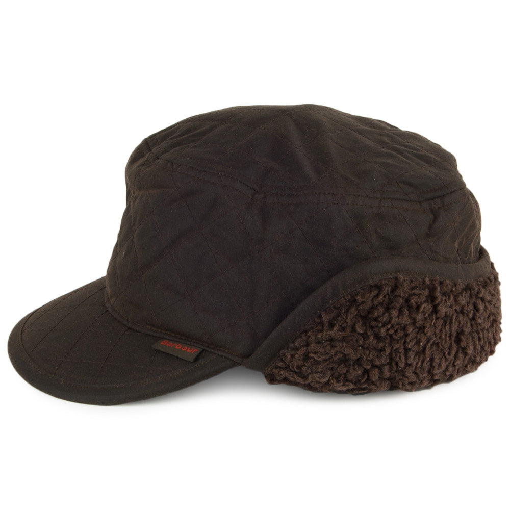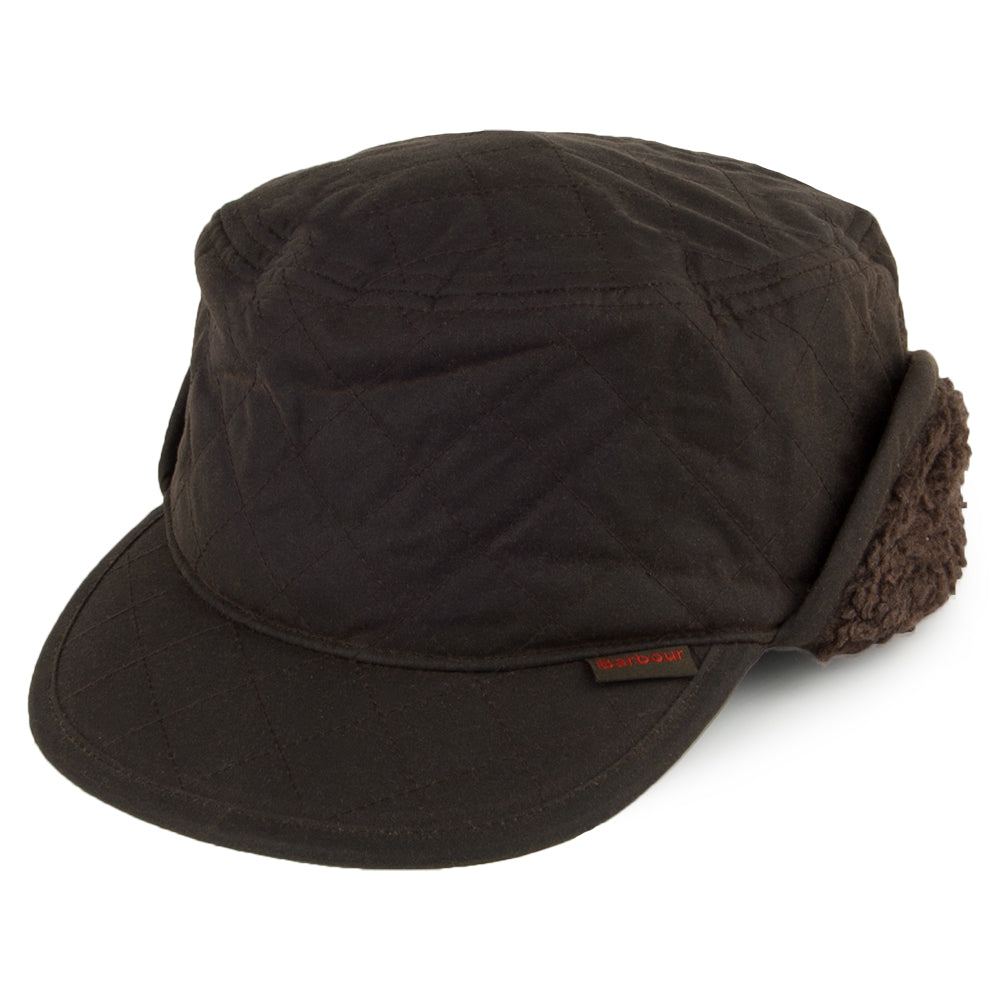 Here is the Barbour Hats Stanhope Hunting Cap in olive. This is made of a rain resistant waxed cotton so it will keep you dry, and you can flip the earlaps down to keep warm as well. There is a Barbour flip tag on the short brim and a tartan sweatband with fleeced lining on the inside.
