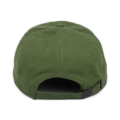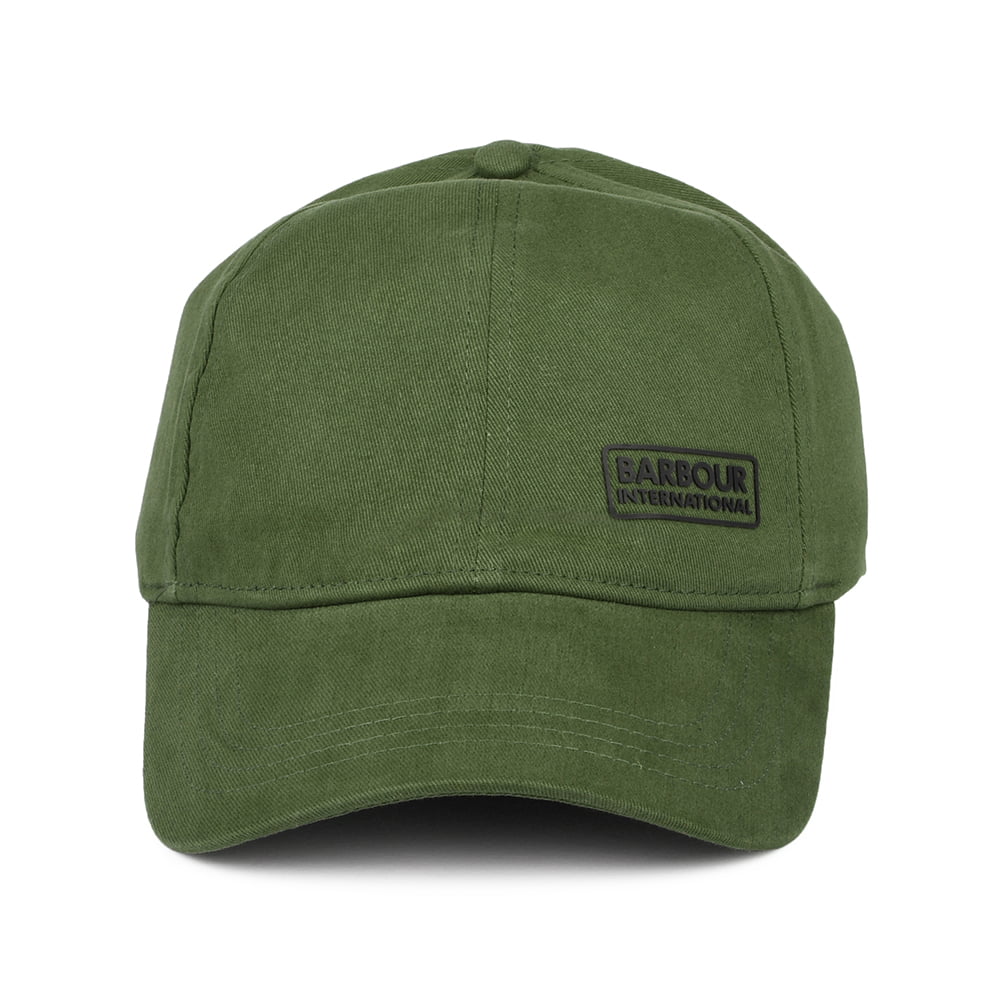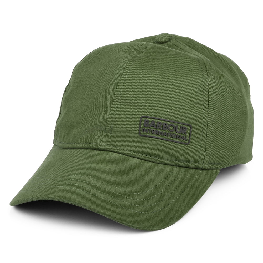 The Barbour International Norton Drill Baseball Cap in moss is a lightweight cap made of 100% cotton and features an adjustable strap at the back for easy sizing. It is finished with a rubber Barbour logo on the left side of the unstructured crown.