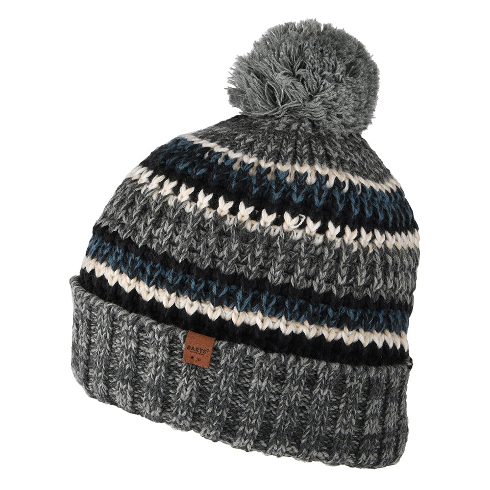 Barts Hats Goser Striped Recycled Bobble Hat - Heather Grey
