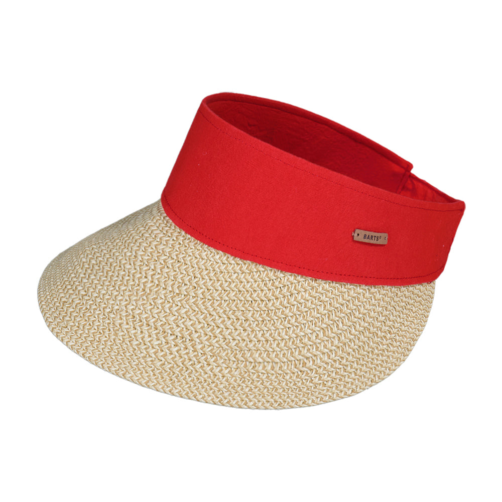 This is the Vesder Visor from Barts in red-natural. This great visor has a 9 cm wide brim on the front which protects your face and eyes from the sun. On the side of the hatband is a small Barts badge sewn on. At the back is an adjustable hook-and-loop strap for easy sizing. A great visor for the beach or a day in the sun!