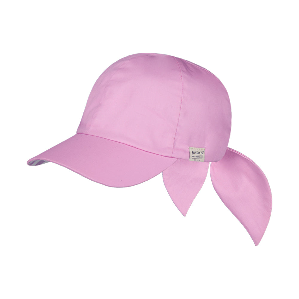 The Barts Hats Wupper Cotton Sun Cap in mauve is made of 100% cotton. This baseball cap has a beautiful bow at the back so it fits most sizes. The underbrim of this hat has a unique print. The unstructured cap has a pre-curved brim and a Barts label sewn on the side.