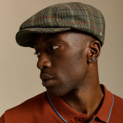 Brixton Hats Brood Check Newsboy Cap - Olive-Moss