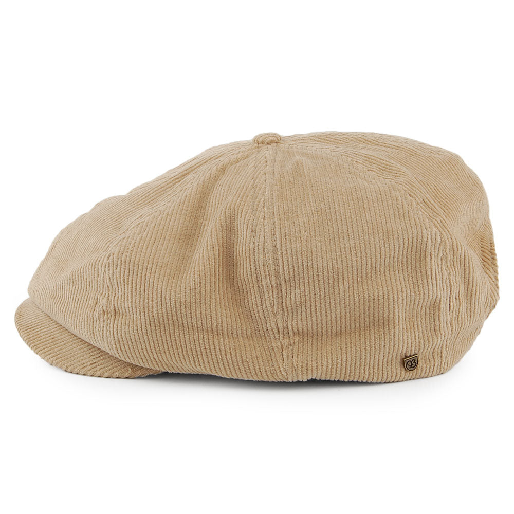 The Brixton Brood Corduroy Adjustable Newsboy Cap in beige. This classic 8 panel cap features a Brixton pin on the side. The cap has an adjustable leather strap at the back which fits most sizes. Lastly the cap is unlined and is finished with a padded sweatband.