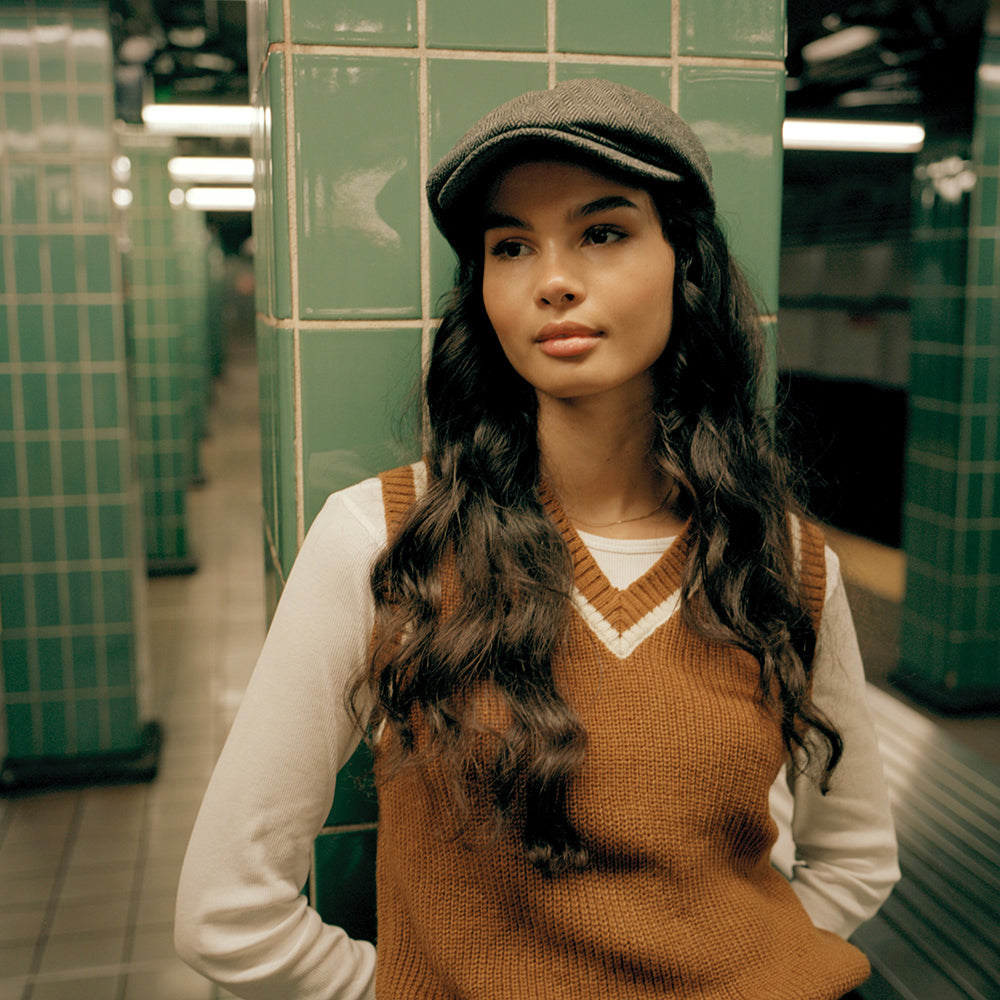 The Brixton's Herringbone Brood in grey-black is a phenomenal newsboy style. With a slightly extended bill and full satin lining this newsboy is an absolute winner. This warm and comfortable cap comes complete with Brixton pin on the side panel.
