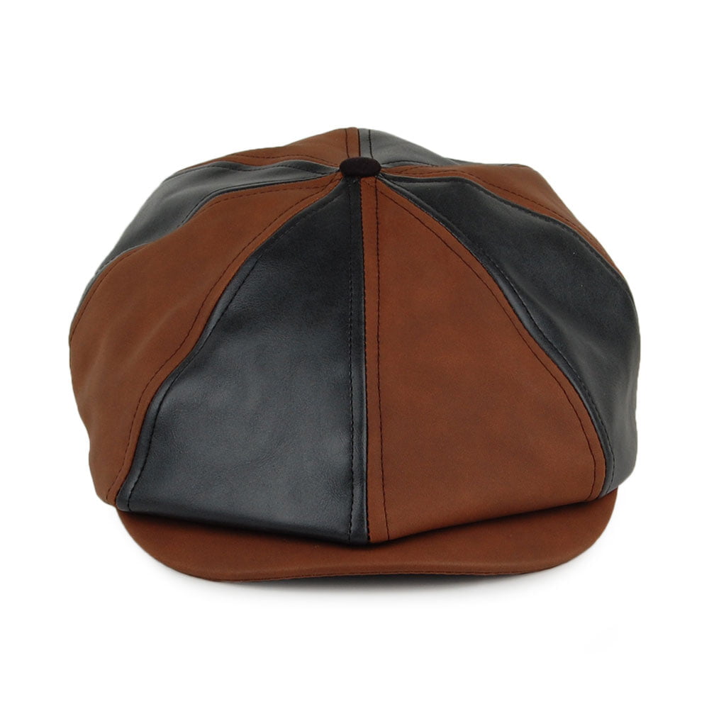 This is the Brood Multi-Panel Newsboy Cap in brown-black from Brixton. This beautiful cap has alternating black and brown panels on the crown. The crown is affixed to the visor with a single press stud. The inside is lined with a satin lining and a cotton sweatband for extra comfort.
