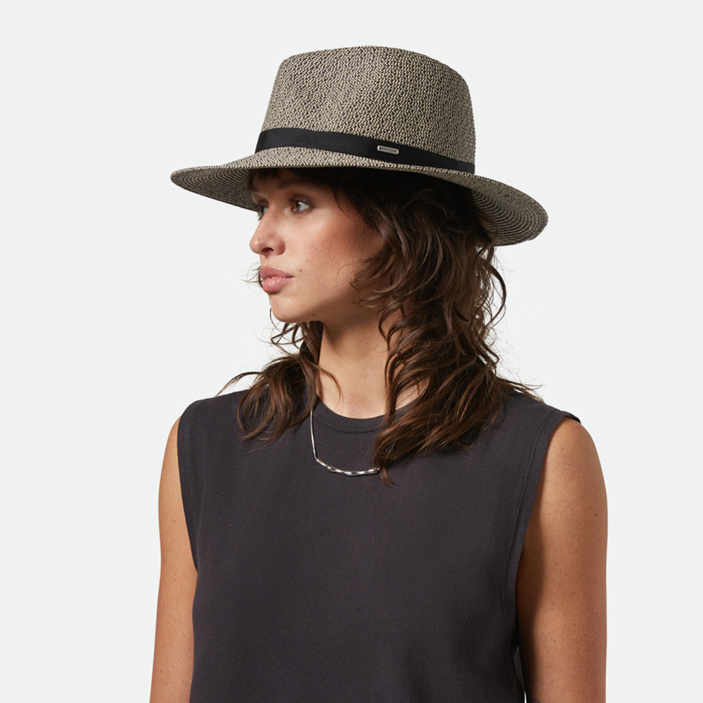 Brixton Hats Carolina Packable Toyo Straw Fedora Hat - Black-Natural