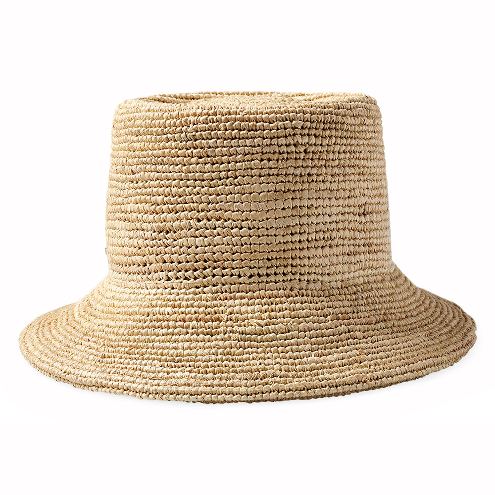 Brixton Hats Ellee Crocheted Raffia Straw Packable Bucket Hat - Tan