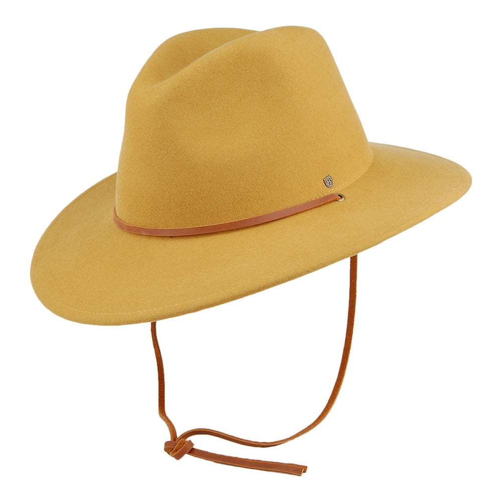 The Field Outback Hat in mustard is a classic Aussie hat from Brixton Hats. Made of 100% wool felt the Field Outback has a 8cm brim and 12cm high crown. This great looking hat is finished with a leather hat strap with a Brixton pin on the side.