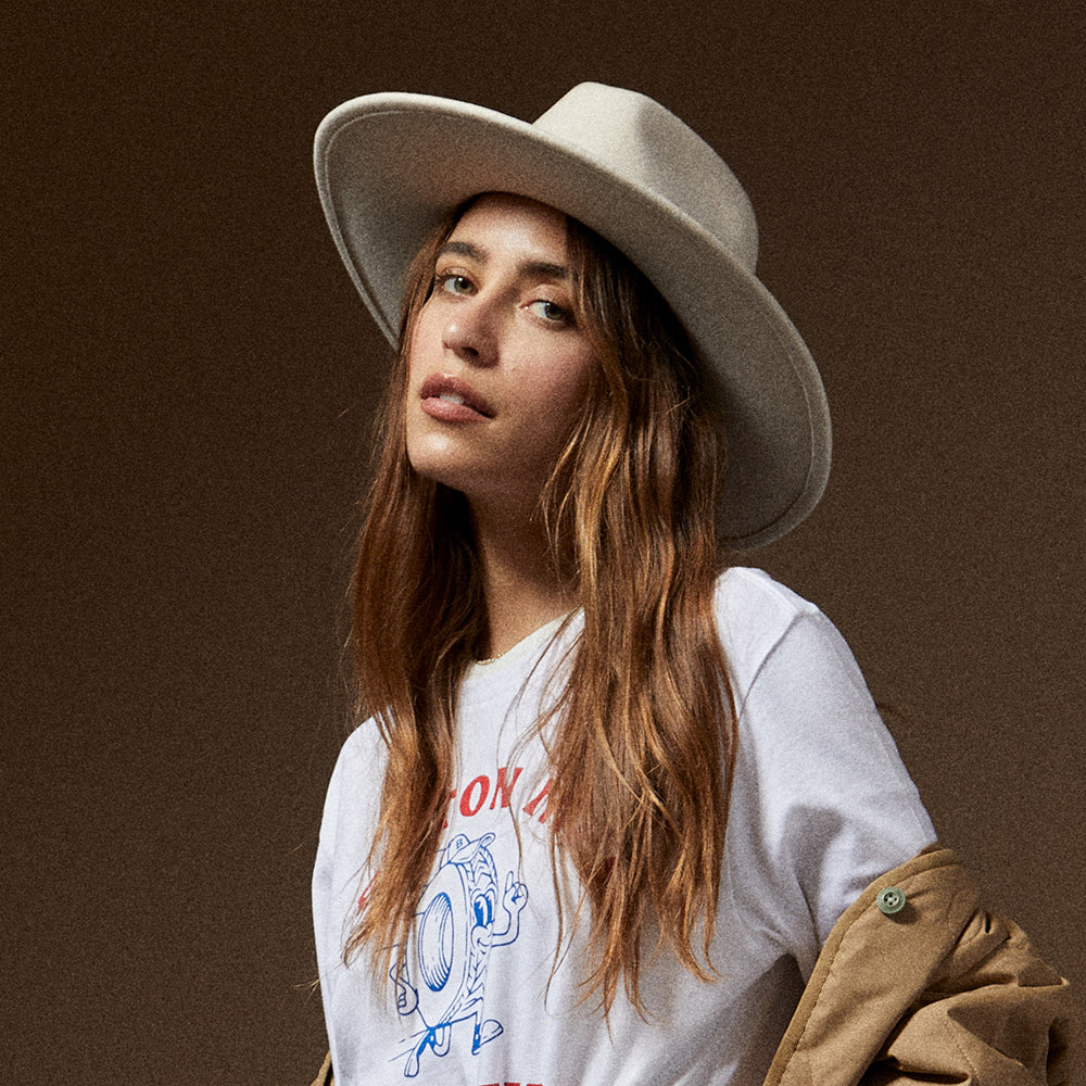 The Brixton Hats Harper Wool Felt Fedora Hat in cream is made of a stiff wool felt. This great looking hat is finished with a leather hat band and a Brixton pin on the side. The super soft sweatband comes with an adjustable hook and loop strap for a perfect fit. A fedora hat fit for fashionistas.