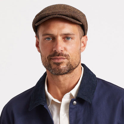 Brixton Hats Hooligan Herringbone Flat Cap - Brown-Khaki