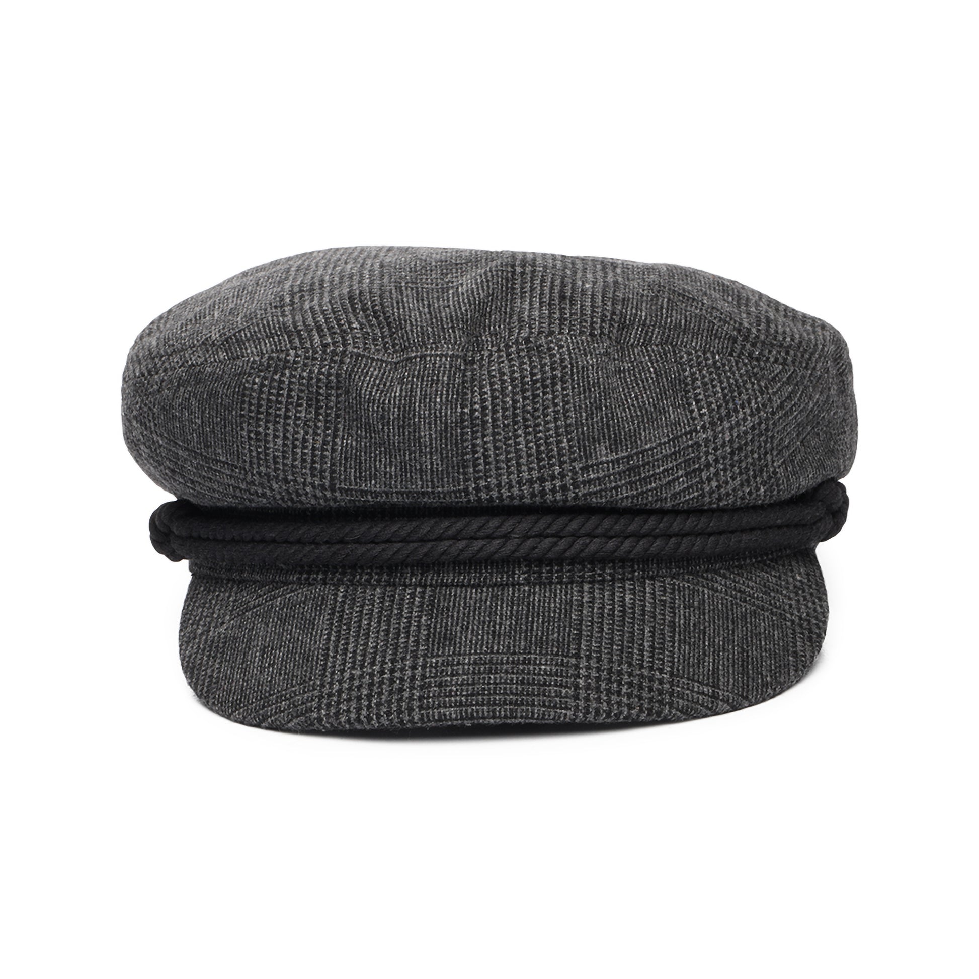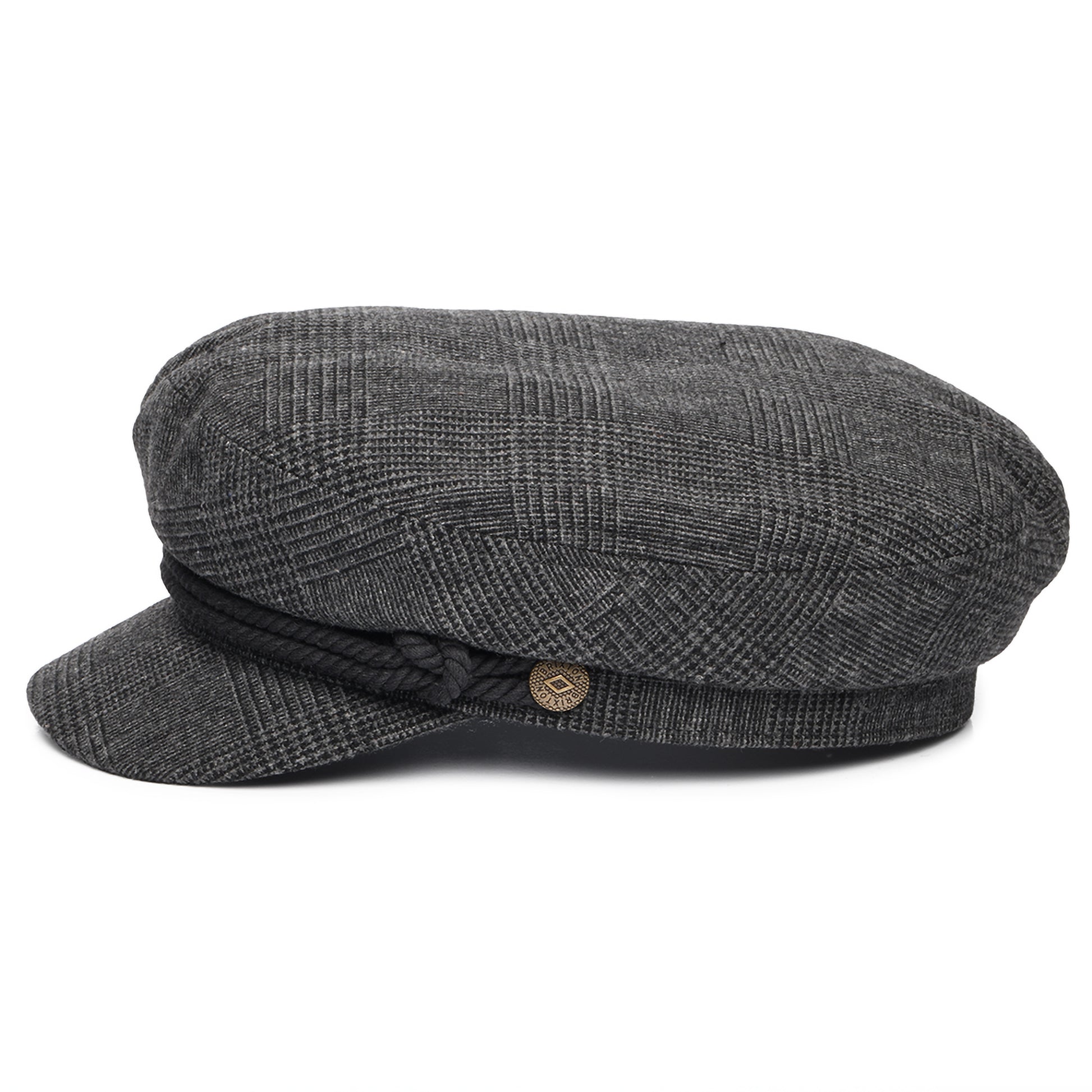 The dark grey Prince Of Wales Check Fiddler cap is the latest version of Brixton's ever-popular fisherman style. This cap has a roped band across the front. The Brixton logo is embroidered towards the rear. The inside of the hat is satin lined and a cotton sweatband which means it is very comfortable to wear.