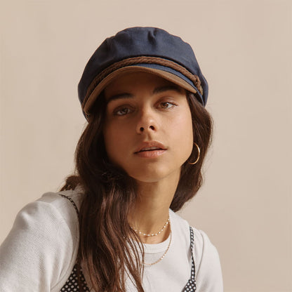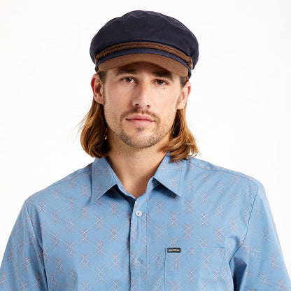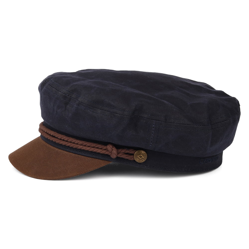 Brixton Hats Waxed Cotton Fiddler Cap - Navy-Brown