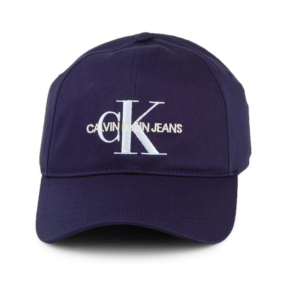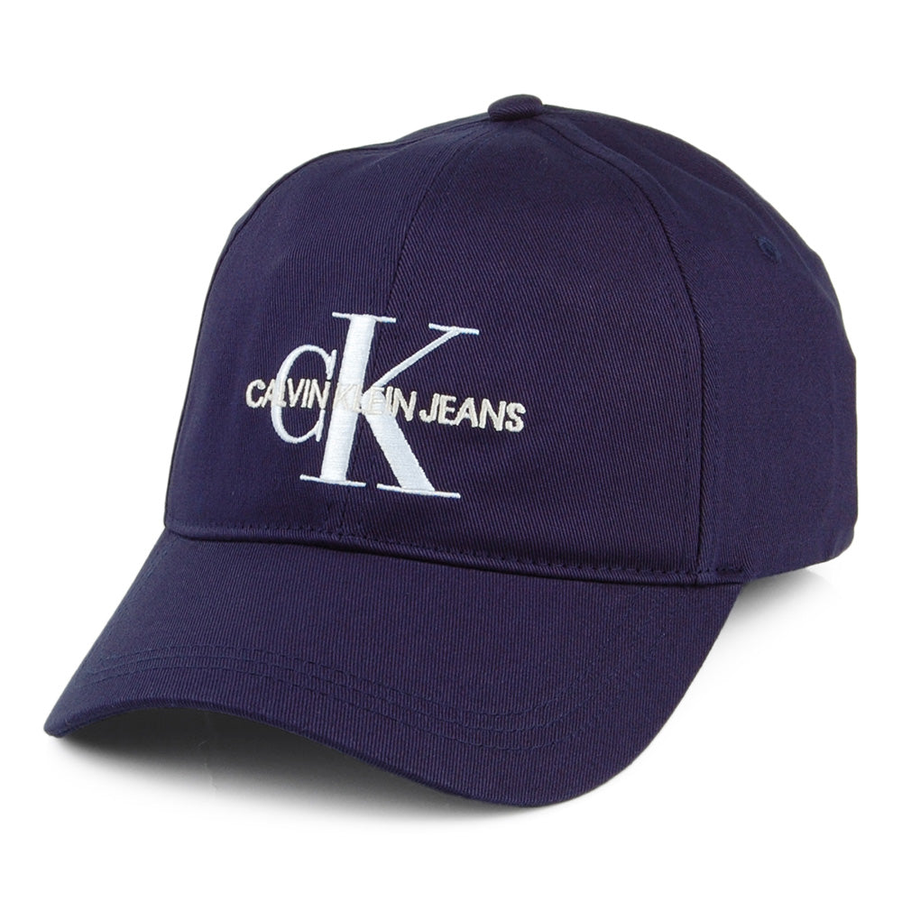 This is the Calvin Klein J Monogram Baseball Cap in navy blue. The cap features the Calvin Klein logo embroidered on the front of the 100% cotton cap. There is an adjustable strap at the back for easy sizing.