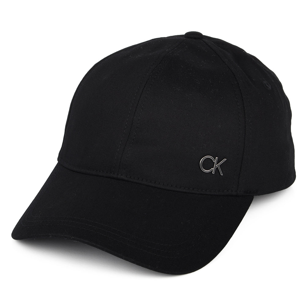 This is the Hats Metal CK Enamel Baseball Cap in Black. The cap is made of 100% cotton and features the CK logo on the front. There is a pre-curved brim and an adjustable back that means this hat will fit great from day one.
