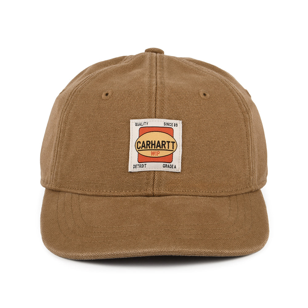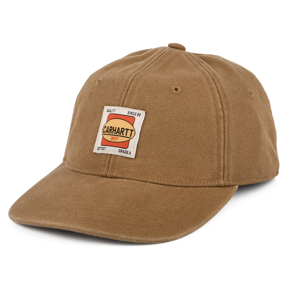 The Carhartt WIP Field Cap in brown is a six-panel style with a slightly curved brim. It is made from an extremely robust dearborn cotton canvas and features a Carhartt WIP patch sewn on the unstructured front. An adjustable strap with Carhartt metal clasp at the back will ensure a perfect fit.