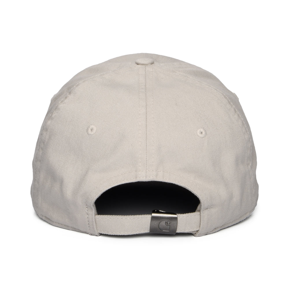 The Carhartt WIP Madison Logo Baseball Cap in stone is made of 100% cotton and features a small Carhartt WIP logo embroidered on the front of the unstructured crown. The hat comes with a pre-curved brim, eyelets for ventilation and an adjustable strap at the back for a comfortable fit.