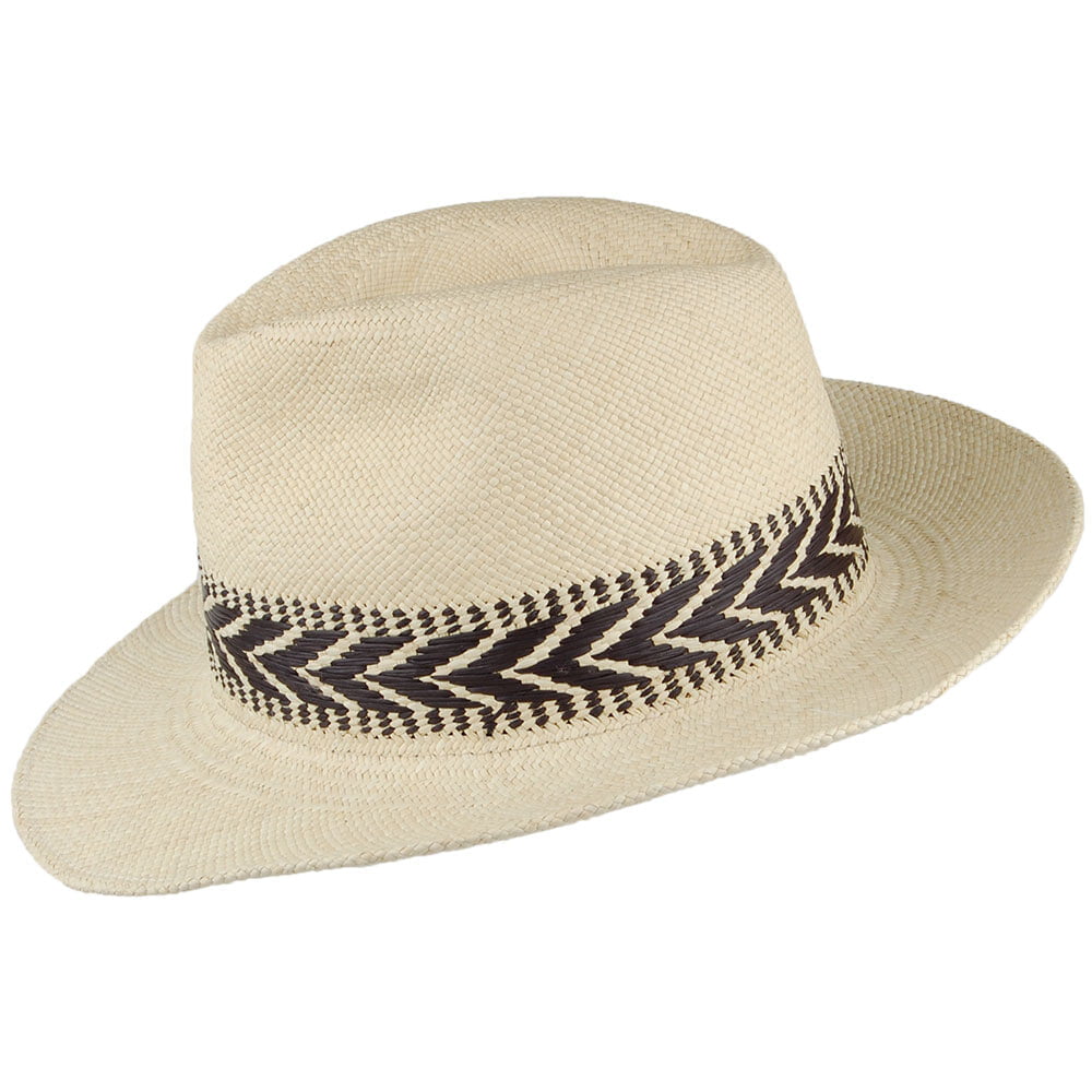 The Capri Panama Fedora is a great new summer style from Christys'. This summer fedora is hand woven in Ecuador and then blocked and finished in Christys' factory in England. It features a brim that measures approximately 7cm wide and a unique pattern in place of a hat band giving this hat a great look.