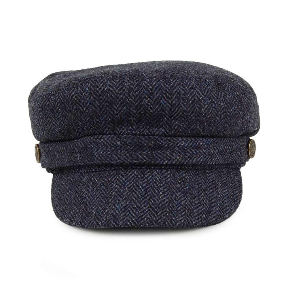 Christys Hats Herringbone Tweed Fiddler Cap - Navy Blue