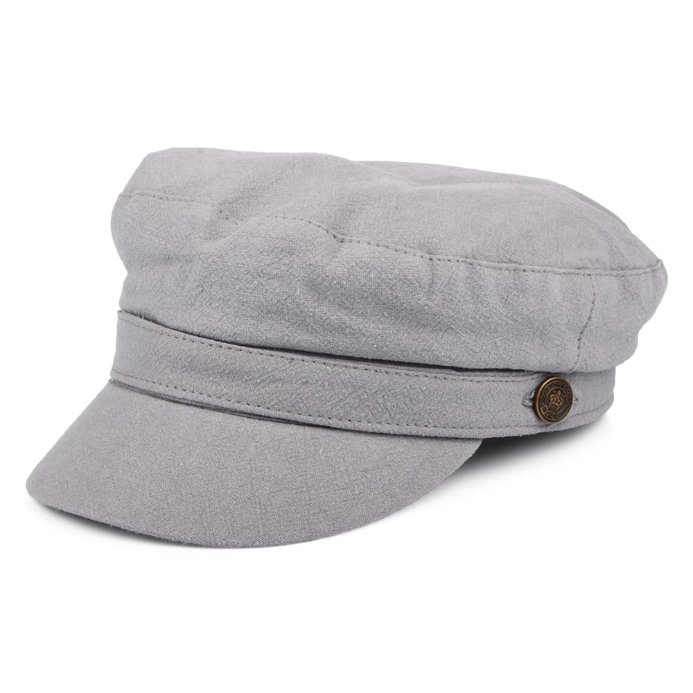 This is the Christys' Paddington Heavy Linen Fiddler Cap in grey. The cap is a classic fiddler style made of a comfortable linen mix with a cotton lining. This is a great style for the summer months.