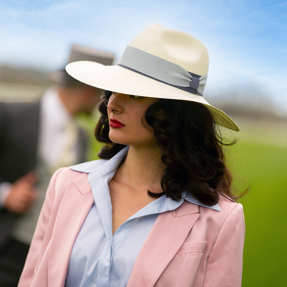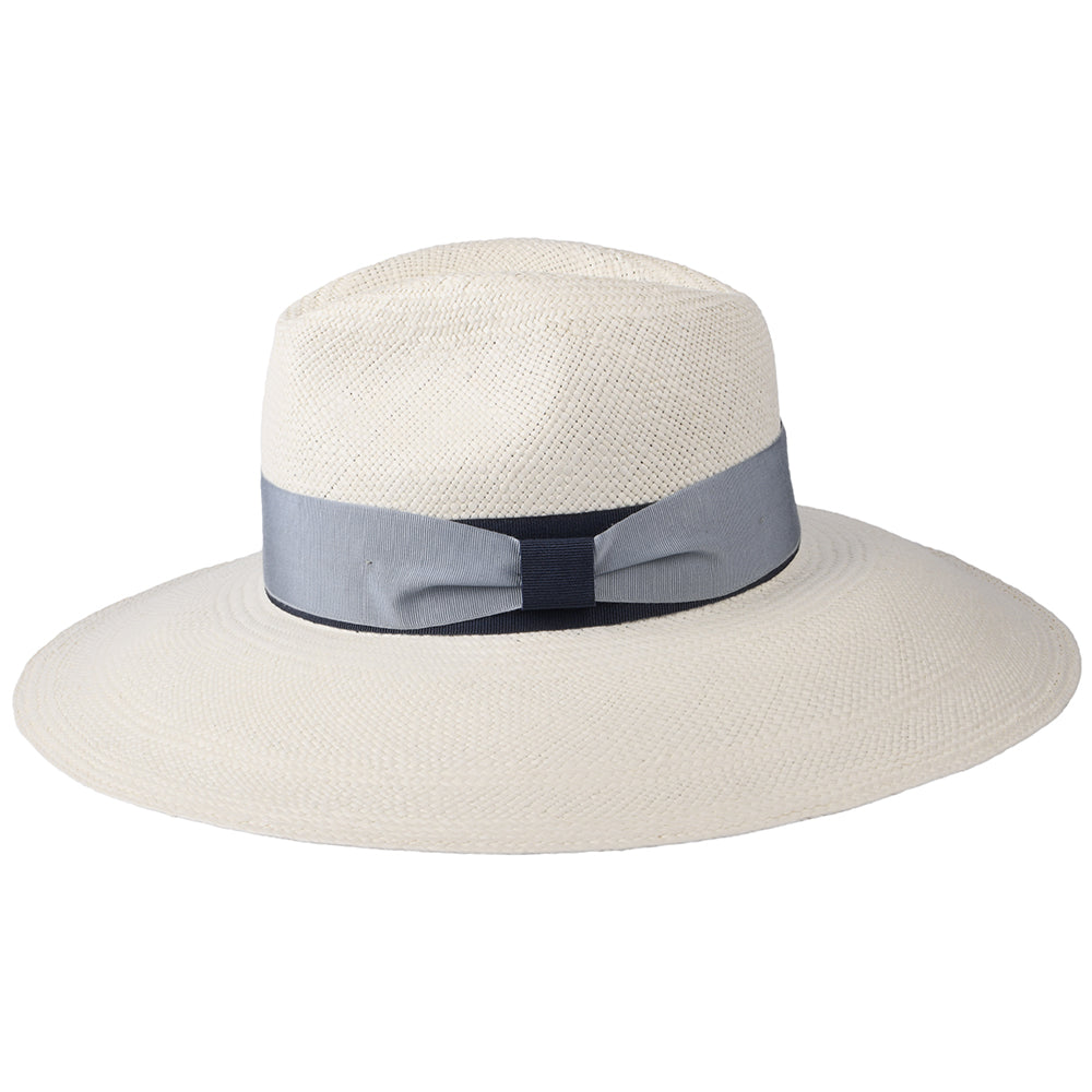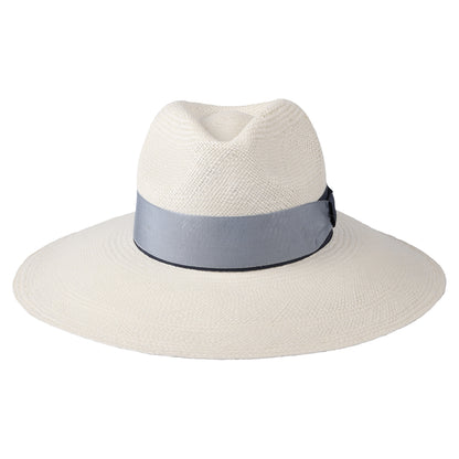 Christys Hats Valegro Wide Brim Panama Fedora Hat With Blue Two-Tone Band - Bleach