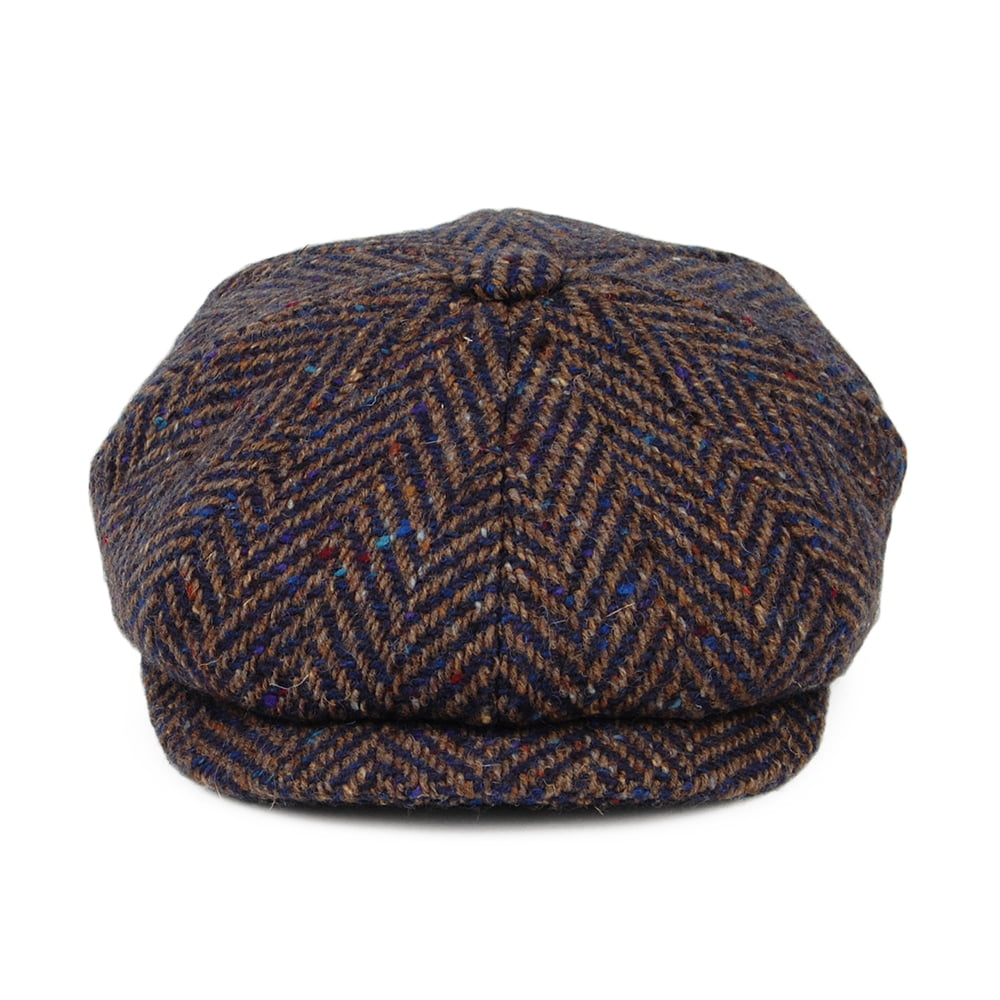 City Sport Donegal Tweed Herringbone Deep Fit Newsboy Cap - Blue-Grey