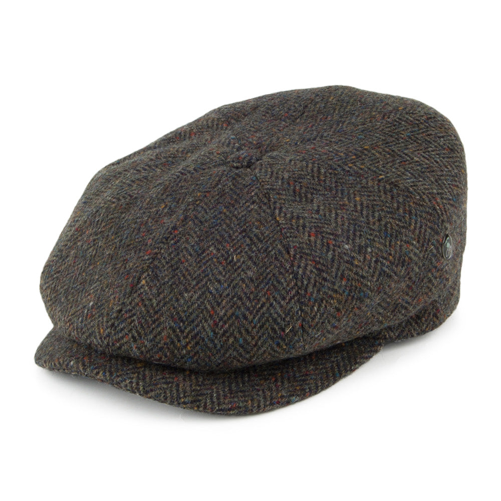 City Sport Herringbone Donegal Tweed Newsboy Cap - Forest