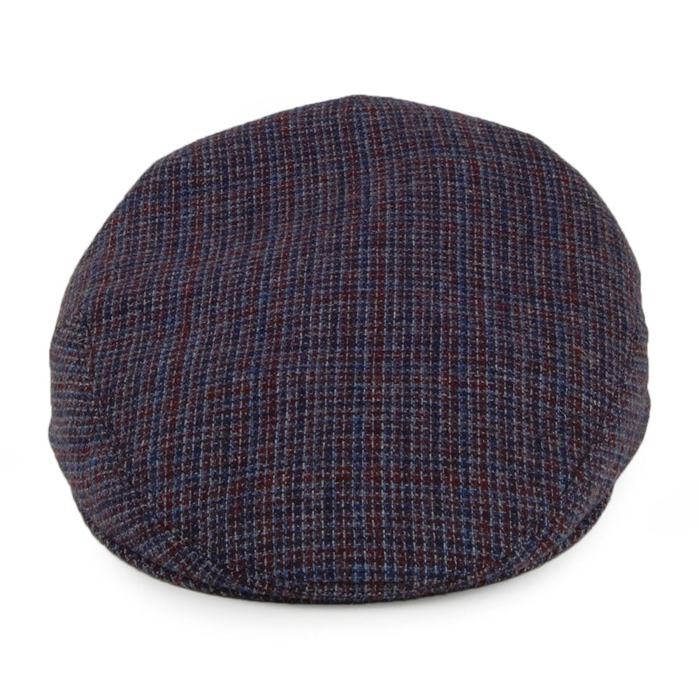City Sport Micro Check Virgin Wool Flat Cap - Blue-Burgundy