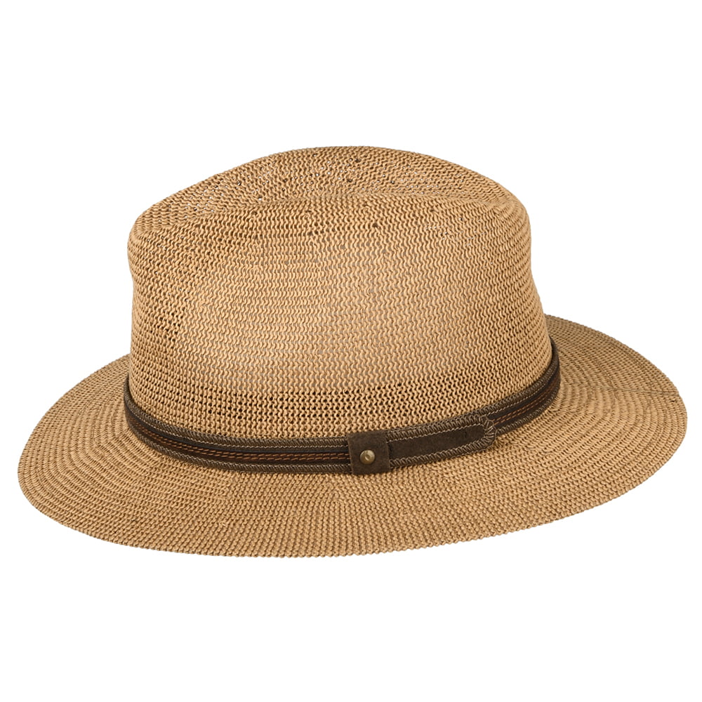 This is the City Sport Ontario Safari Fedora Hat in toffee. It is a great summer style from the famous Belgian hat brand. The brim is roughly 6cm wide giving you sun protection and there is a unique hat band finishing it off.