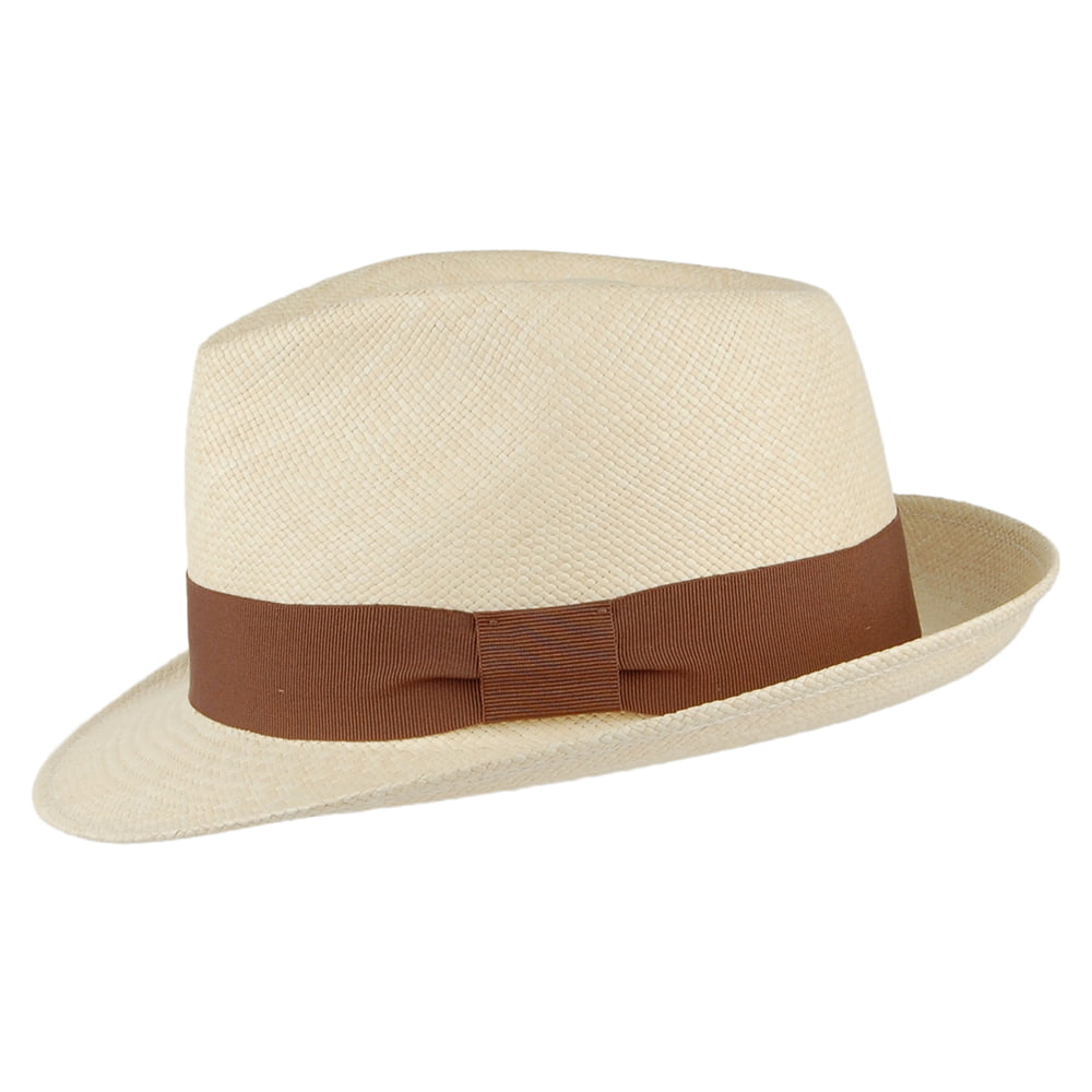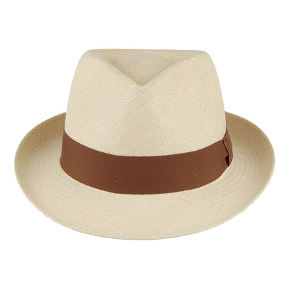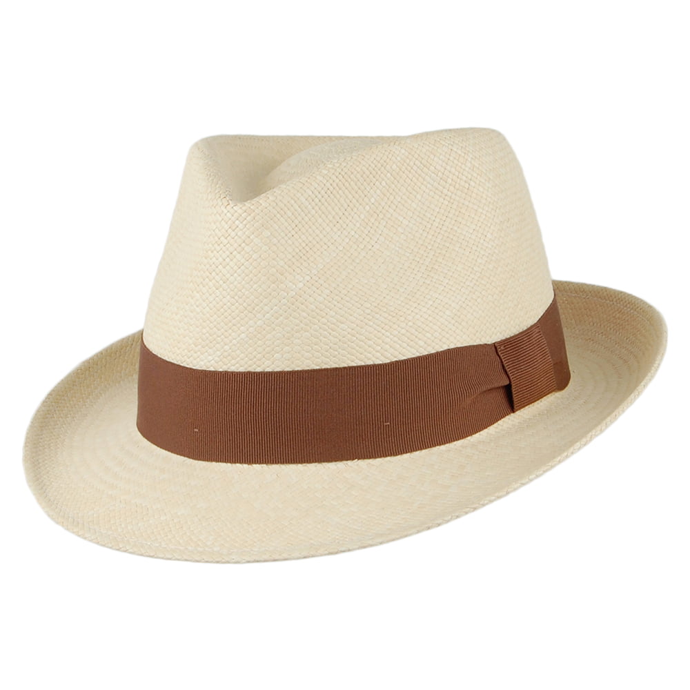 The City Sport Robinson Panama Trilby Hat in natural is a genuine panama that has been hand made in Ecuador. This hat features a brown hat band. A smooth sweatband inside the hat ensures it is comfortable to wear.