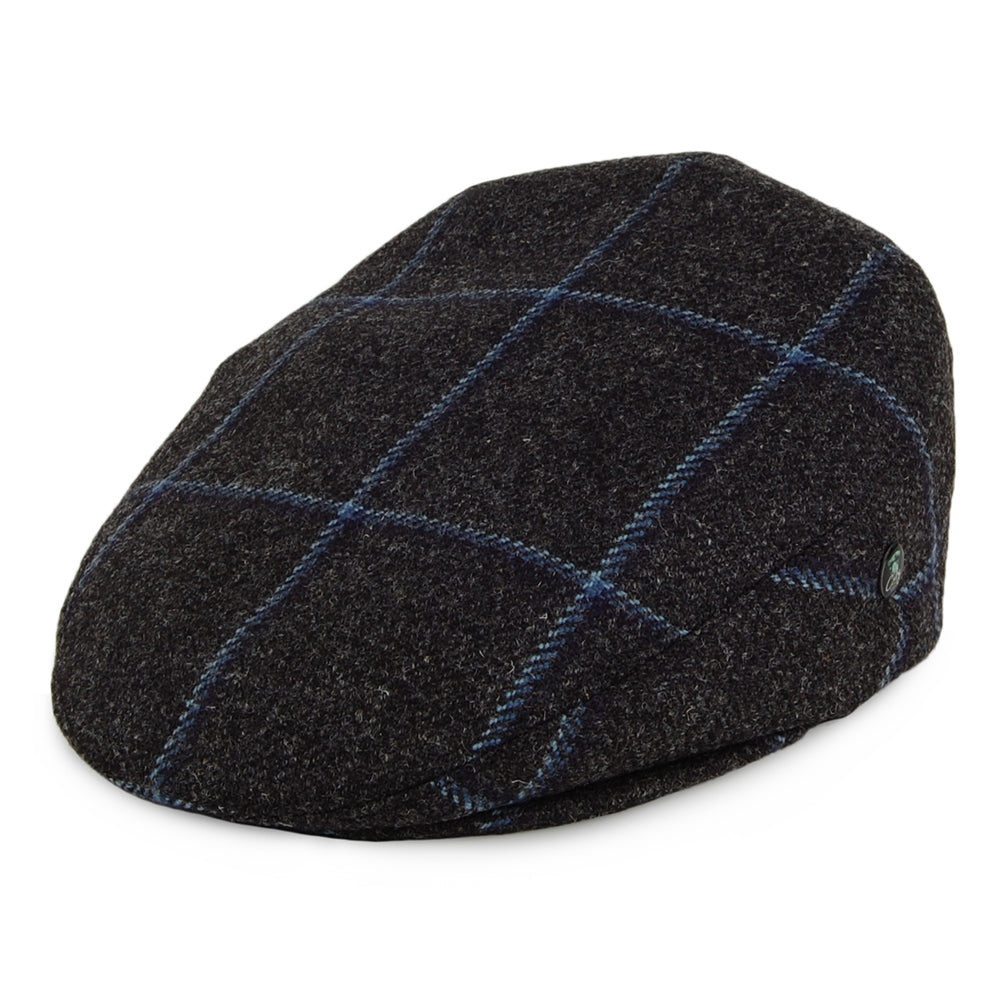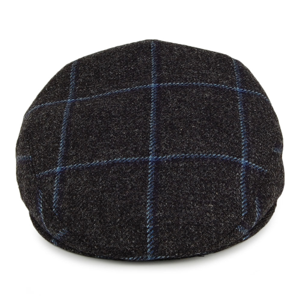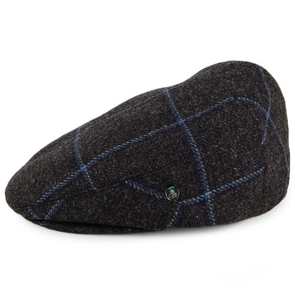 City Sport Saxony Windowpane British Wool Flat Cap - Charcoal