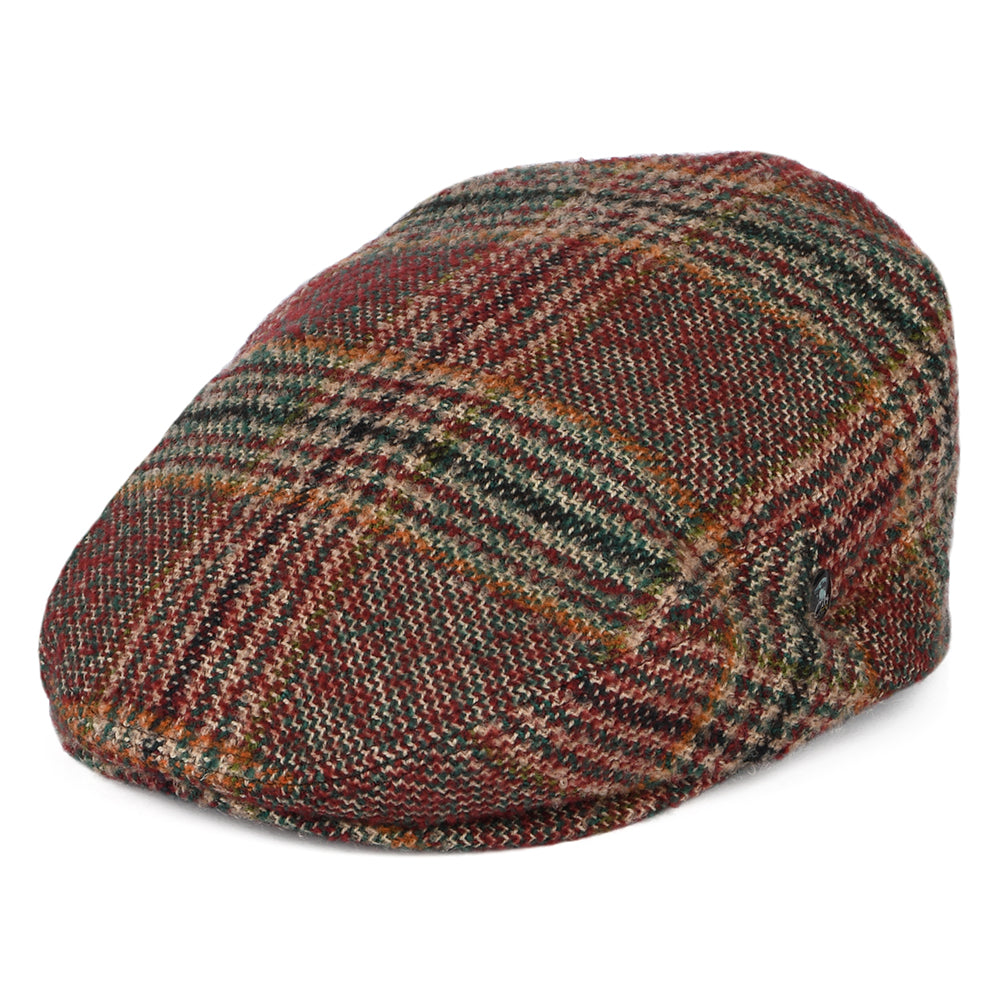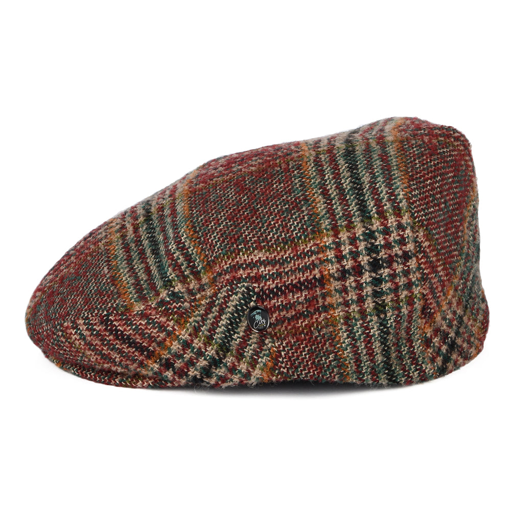 City Sport Virgin Wool Prince Of Wales Check Flat Cap - Red-Green