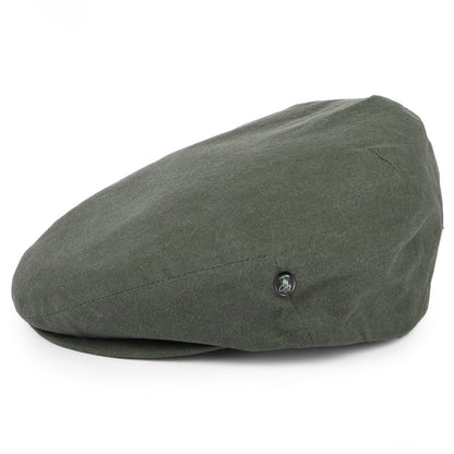 This is the City Sport Washed Cotton Flat Cap in olive. The cap is made of 100% cotton and has a mesh lining for a comfortable fit. There is a sewn down brim and a City Sport pin attached on the side. This is a fantastic flat cap style for summer.