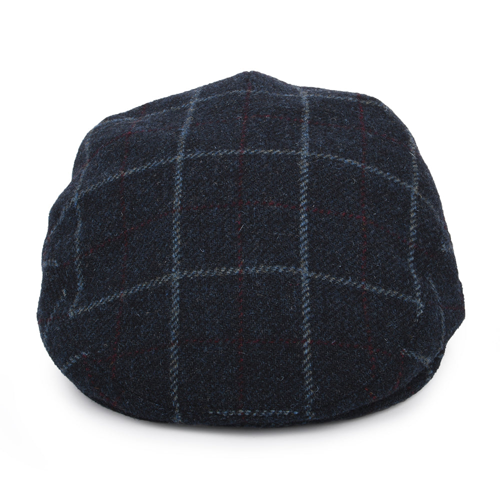 City Sport Windowpane Virgin Wool Flat Cap - Navy Blue OLD