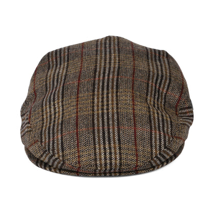 The City Sport Hampstead Flat Cap in brown-tan is made of a soft and warm virgin wool and cashmere blend. this cap features a unique striped pattern and a removable City Sport pin on the side. Inside is a satin lining for added comfort.